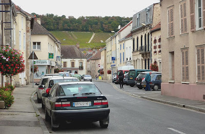 The weather had turned much cooler and breezier since our arrival in Bouzy, and we had even had a few rain showers. Luckily, the clouds broke that afternoon, at least partially, and we decided to set out and do some sightseeing. I really enjoyed being out in the fresh air and taking in the sweeping vistas from the road that runs down the Côte des Blancs.