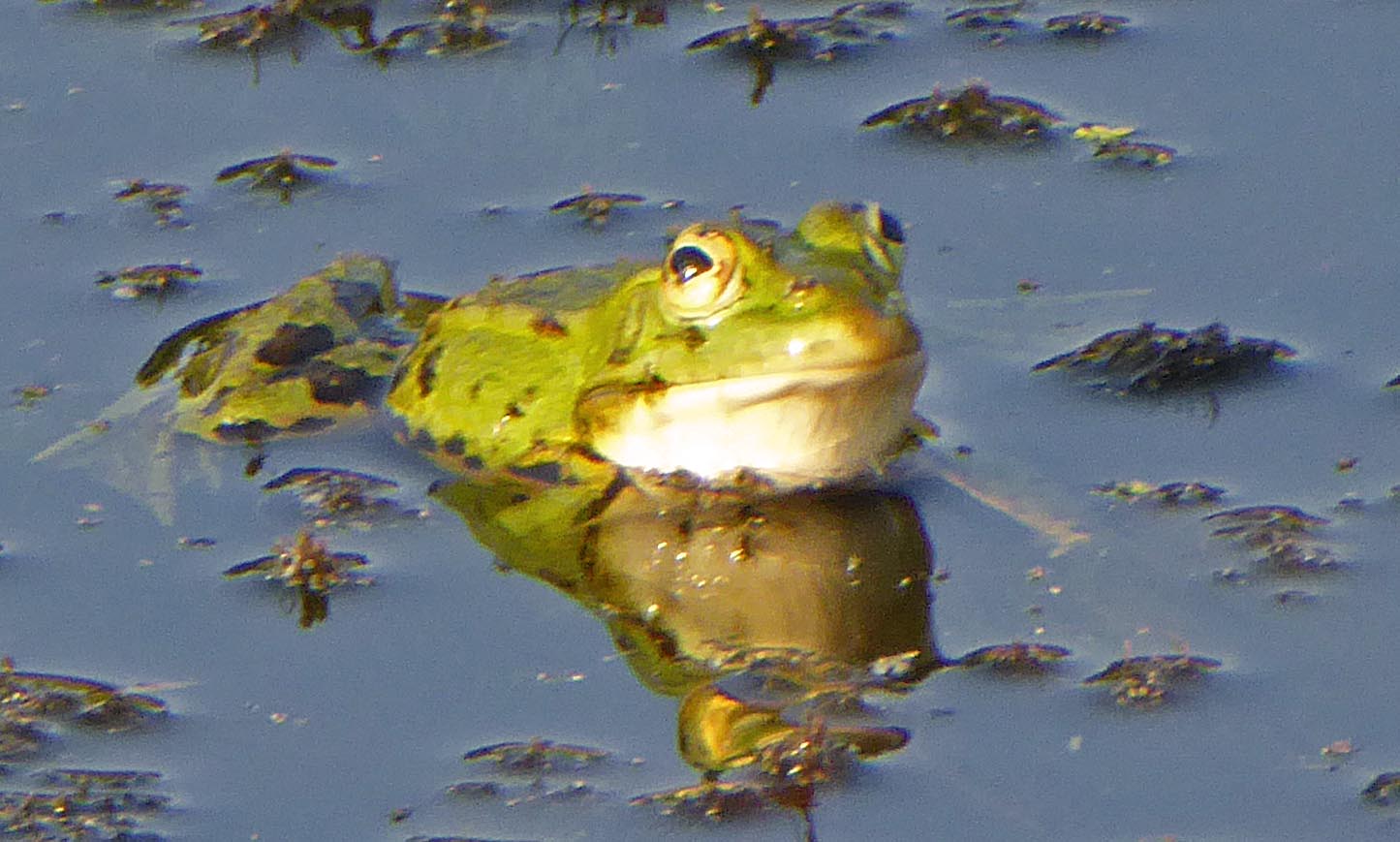We've been hearing them croak for weeks, but the frogs have been very shy this year. Actually, I wasn't sure whether they were toads or frogs, but toads don't stay in the water very long here. They return to dry land as soon has they have bred and spawned, I think.