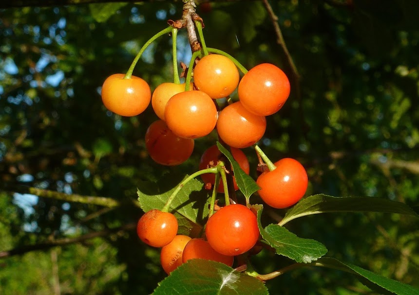 DeleteThe sour cherries on all the trees in another neighbor's yard and out around the vineyard are either just not ripe yet or are stunted. Only the ones in my photos of the little orchard strip are pretty like that.