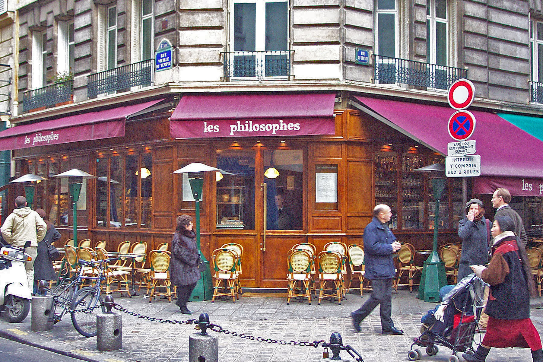 One of the main streets in the Marais neighborhood in Paris is la rue Vieille-du-Temple. It was in existence as early as the 13th century. Walt and I spent a week in an apartment on this street, near its intersection with the rue des Francs-Bourgeois, in the year 2000. We had a friend who lived just across the street from the Bar des Philosophes back then. I wonder if she still lives there today....